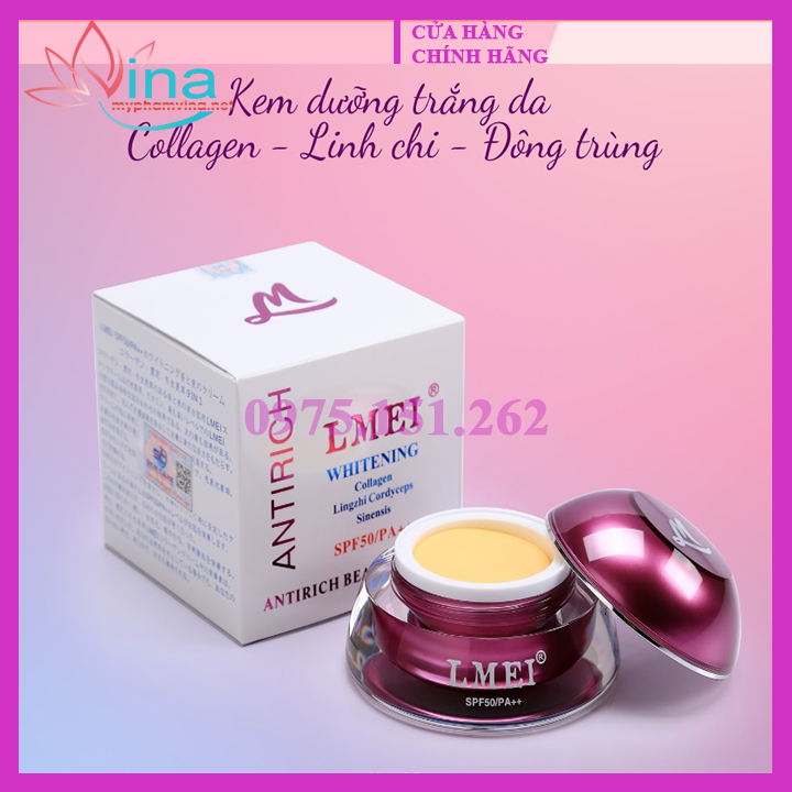 Kem dưỡng trắng lmei linh chi đông trùng mang lại cho làn da bạn trở nên trắng mịn và quyến rũ hơn. Sự kết hợp từ thảo dược thiên nhiên và các vitamin tạo ra dòng sản phẩm mà biết bao phái đẹp mong muốn được sở hữu. Không có chất bảo quản và cực kì chất lượng nên bạn có thể yên tâm thực hiện các bước làm đẹp mà không phải lo lắng gì